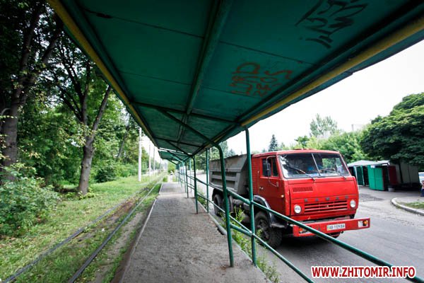 Конечная остановка единственной линии житомирского трамвая называется "Льнокомбинат", хотя, фактически завода там уже и нет.