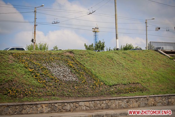 Композиция на клумбе напоминает герб Житомира. Очень слабо напоминает...