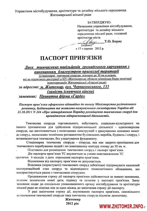 Кстати, именно за время пребывания в кресле мэра Владимира Дебой некоторые объекты «Гарде» превратились из киосков во «временные павильоны общественного питания». Пример – деревянный сруб напротив админздания КП «Житомирводоканал».