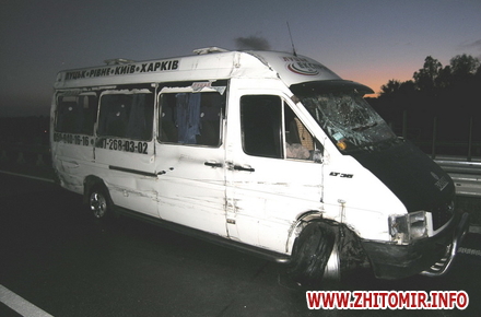 «Дорожно-транспортное происшествие произошло 17 июля, около 20.00, на 119 км автодороги Киев-Чоп в Коростышевском районе. Водитель микроавтобуса VOLKSWAGEN LT 35, житель Волынской области Луцкого района села Лыще, 1961 года рождения, двигаясь в направлении города Киева, не справился с управлением, допустил занос автомобиля, совершил столкновение с колесоотбойником, вследствие чего произошло переворачивание микроавтобуса на правый бок», - поинформировали в дежурной части Госавтоинспекции.
