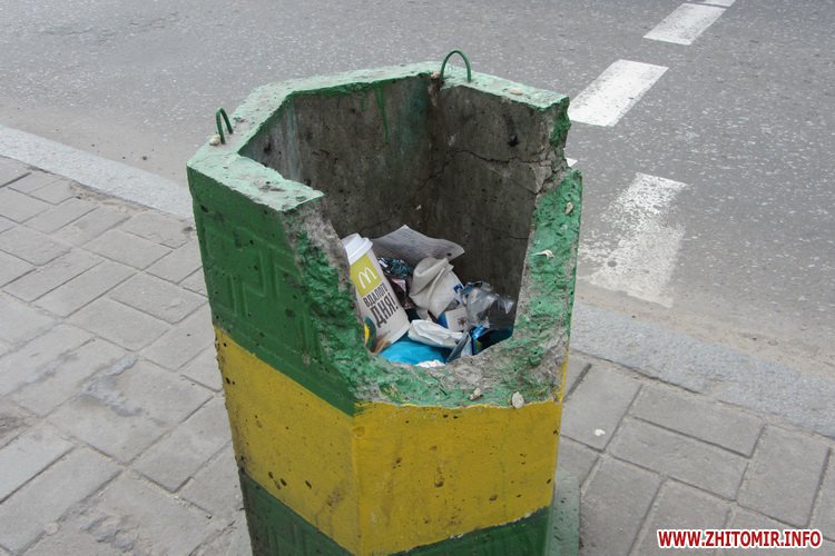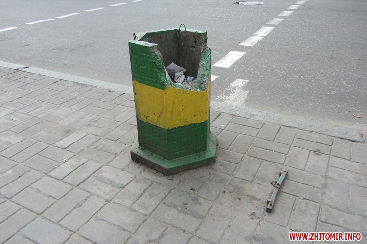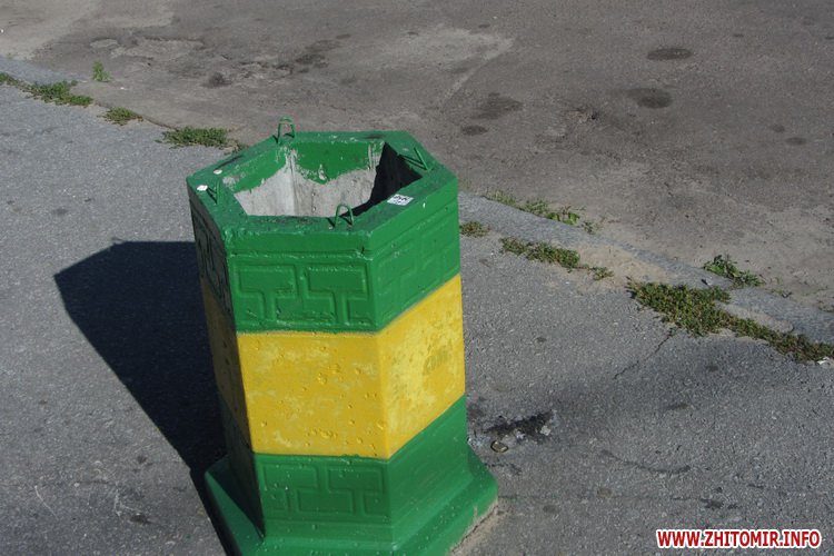 Установленные на улицах Житомира в конце августа прошлого года бетонные мусорные урны сейчас выглядят плачевно.