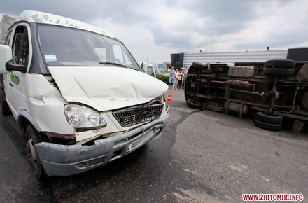 31 июля при столкновении двух грузовых автомобилей "Газель" по улице Котовского в Житомире одна из них перевернулась.