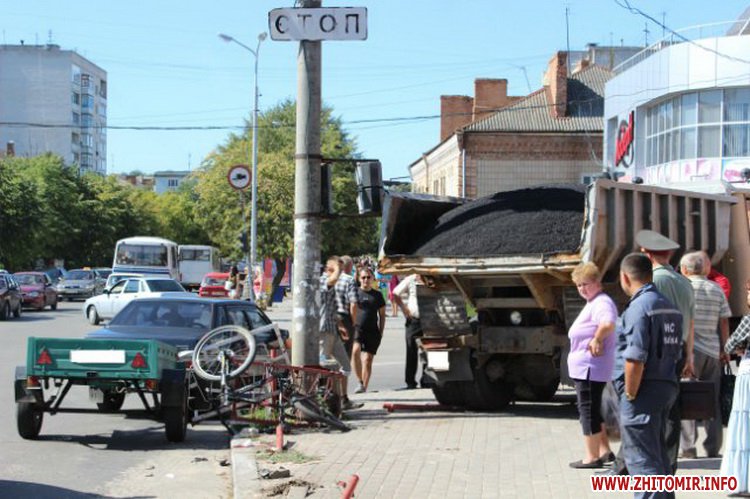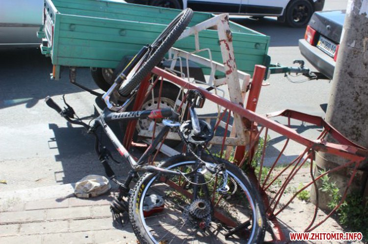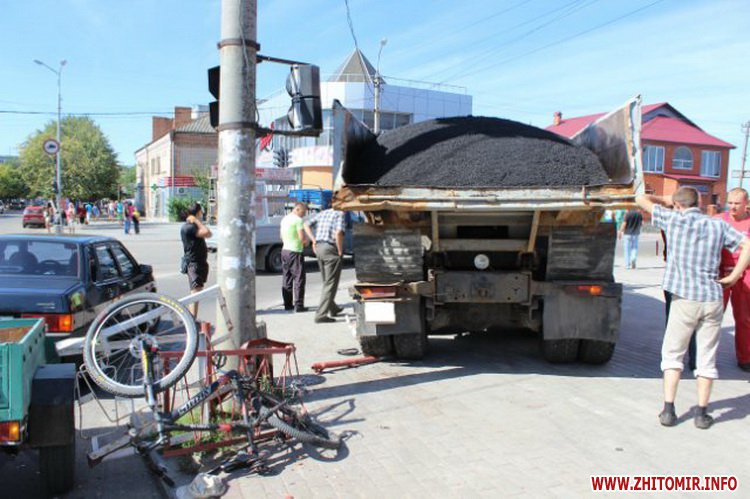 По информации сайта «Бердичев Деловой», ДТП произошло на перекрестке возле магазина «Викотек» по улице Ленина: грузовой автомобиль «КРАЗ», который перевозил около десяти тонн асфальта, съехал с проезжей части на тротуар, смяв все ограждения, распугав пешеходов и совершив наезд на велосипедиста. Последний отделался только незначительной травмой ноги и был госпитализирован приехавшими на место происшествия медиками.