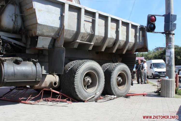 «Как утверждает водитель «КРАЗА», выехать на тротуар его заставила резко затормозившая перед ним «девятка» с прицепом. Остановиться так резко груженый автомобиль не мог, а поэтому водитель принял решение, дабы избежать столкновения, выехать на тротуар», - сообщает «Бердичев Деловой».