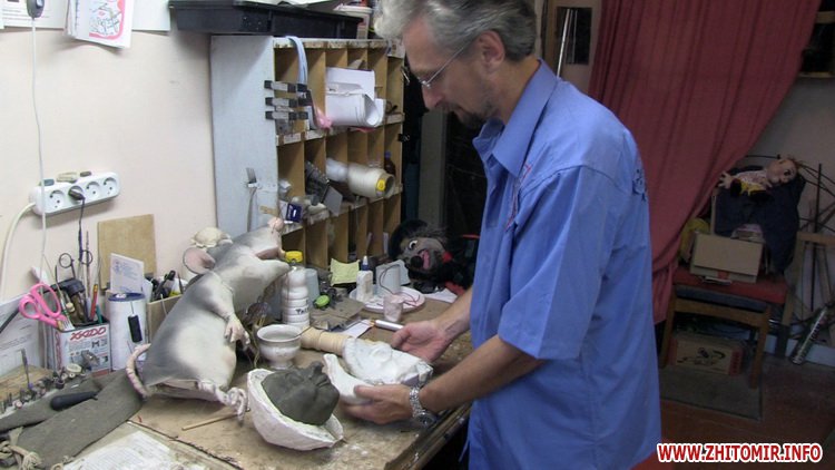 Раніше Сергій Соловйов ліпив лялькових політиків, музикантів та співаків. Тепер виготовляє іграшкових акторів для Житомирського театру ляльок.