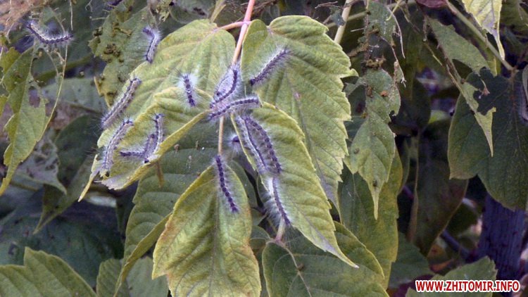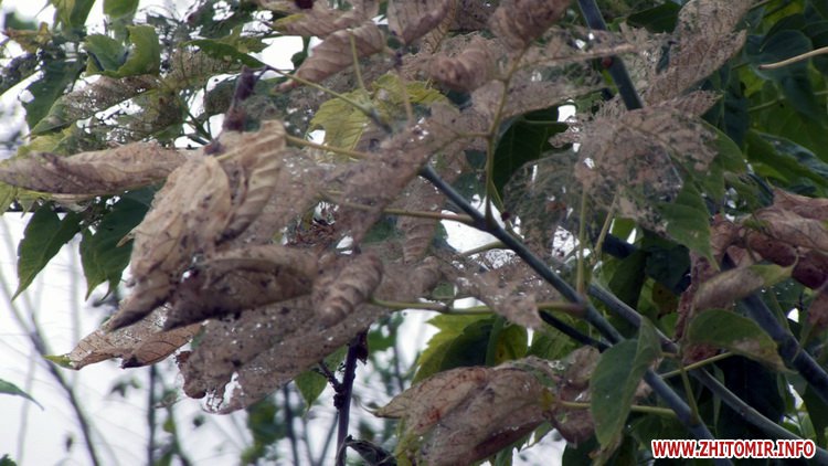 Інший шкідник, який швидкими темпами розповсюджується по Житомирські області – американський білий метелик. Його гусінь об’їдає дерева та кущі і зменшує врожаї.