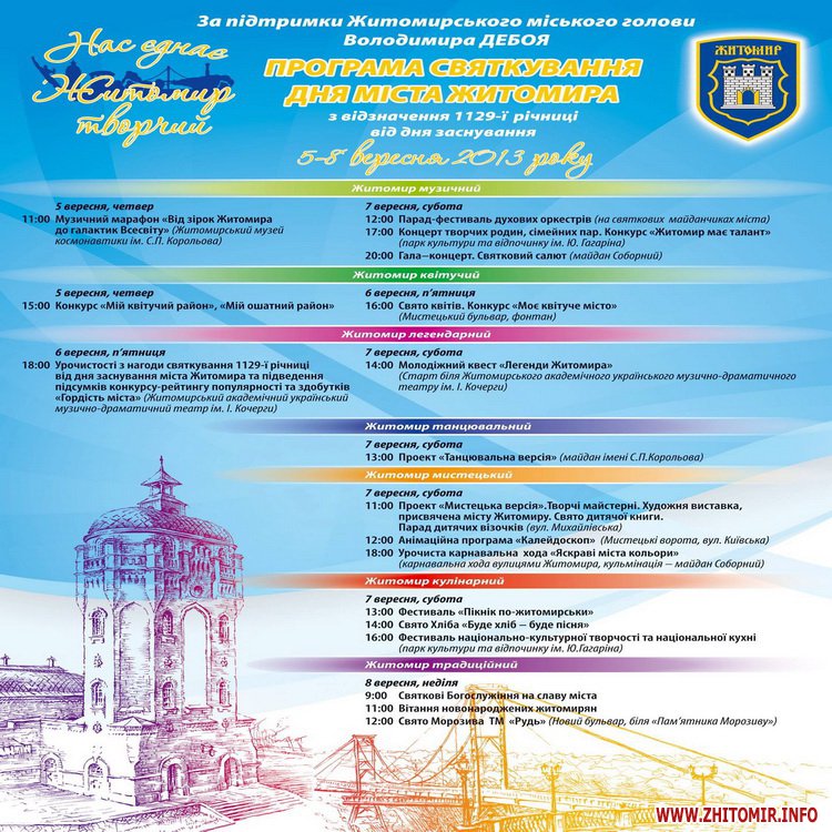 Цьогоріч День народження Житомира пройде під девізом «Нас єднає Житомир творчий».