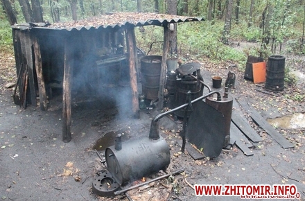В Коростенском районе Житомирской области в лесу милиционеры обнаружили мини-завод, где круглосуточно варили самогон.