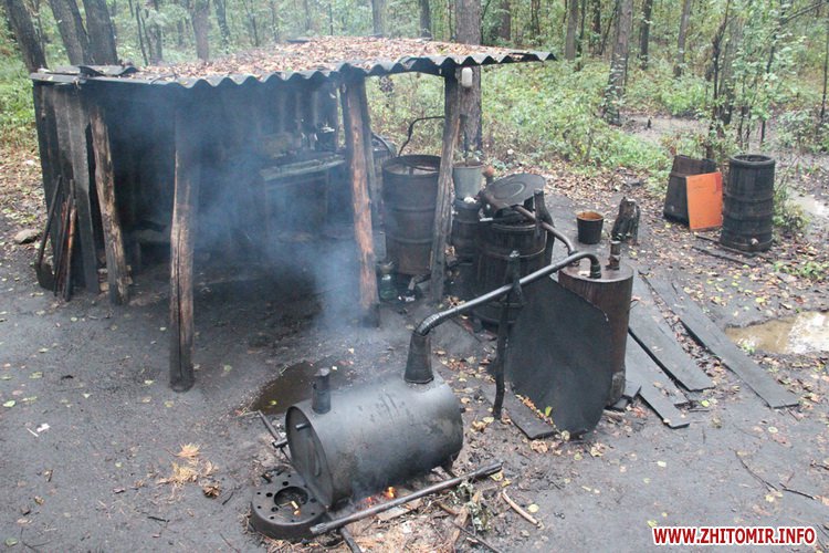 - В Житомирской области постоянно ведутся профилактические мероприятия по предотвращению самогоноварения и пьянства среди населения, - рассказывает заместитель начальника Управления общественной безопасности УМВД Украины в Житомирской области Владимир Мазарчук. - Осознавая, что такие действия не могут долго оставаться без внимания правоохранителей, самогонщики решили пойти «в лесное подполье», обустроив винокурню в кустарнике.