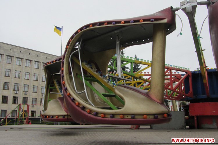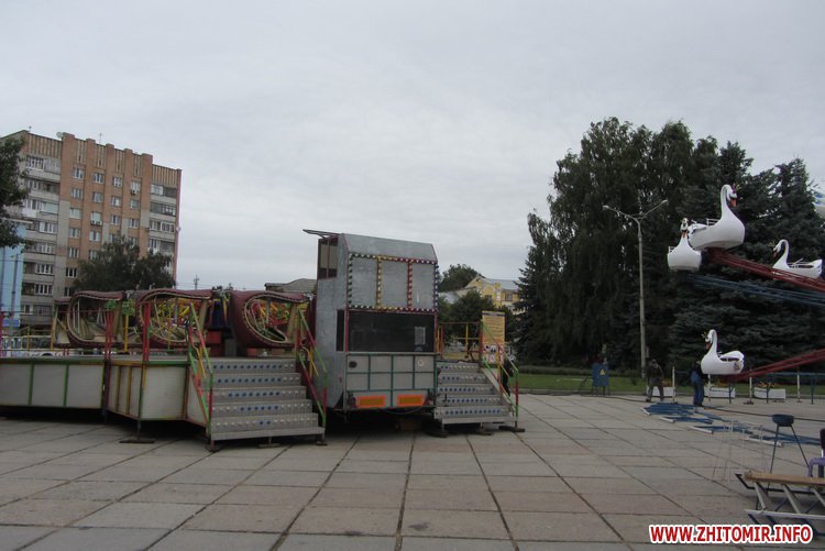 На площади Королева в центре Житомира устанавливают аттракционы, которые будут развлекать детей и взрослых на День города.