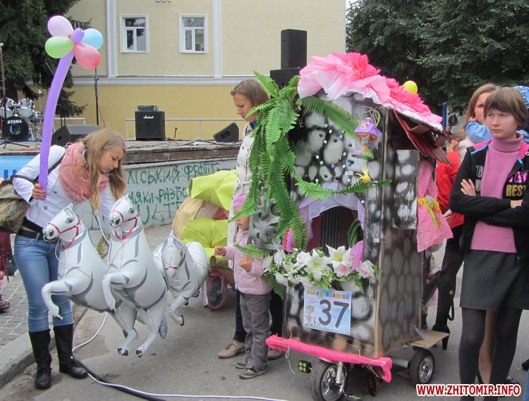 Спортивні автомобілі, ракети, вежі на колесах та карети. Такими виглядали дитячі візочки в День міста на Михайлівській. Тут відбулося свято під назвою «Парад колясок», на якому кожен охочий, озброївшись власною фантазією, міг перетворити дитячий візок на витвір мистецтва. Організатори кажуть - святкувати День міста повинні і маленькі діти, тому для них і влаштовуються подібні конкурси.