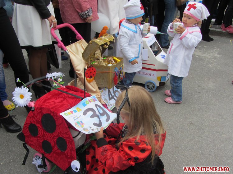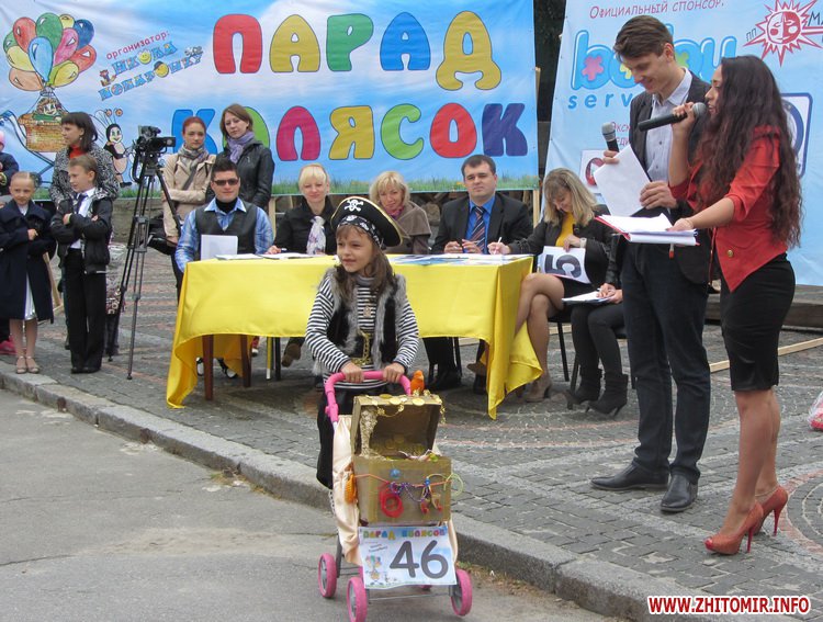 Організатор свята Центр раннього розвитку «Школа Понарошку» висловлює вдячність спонсорам цього барвистого заходу. «Парад колясок» підтримали та підготували подарунки переможцям і усім учасникам: перший в Житомирі інтернет-магазин безпечної косметики і побутової хімії «без хімії» ЕКОЛОГІЧНО; служба прокату дитячих товарів «Babyservice»; компанія «Нові вікна», спеціалізований магазин шпалер – «Статус»; страхова компанія «Іллічівська»; рекламна агенція «Мадагаскар»; стоматологія Сіроша; магазин канцтоварів «Клякса»; видавництво «Ранок»; Інформбюро; «Просто Радіо 104,9Fm» та інтернет-видання Житомир.info.