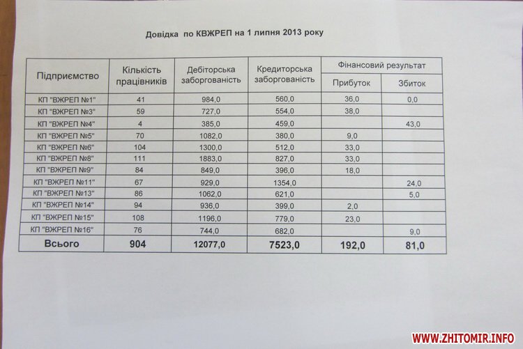Кроме того, депутатов возмутило, что победителями конкурса стали убыточные ЖЭКи: вместо «Комэнерго» дома будут обслуживать ЖЭК №13 (убытки за 6 месяцев этого года – 5 тыс.грн., долг по зарплате – 192 тыс.грн.) и ЖЭК №16 (убытки – 9 тыс.грн., долг по зарплате – 263 тыс.грн.), вместо ЧП «ВЖРЕП №4» - ЖЭК №4 (убытки – 43 тыс.грн., долг по зарплате – 9 тыс.грн.).