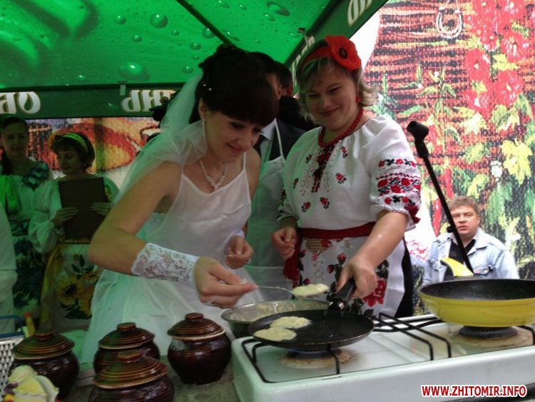 Однако изюминкой фестиваля стало научить всех украинских девушек готовить деруны. Как утверждали организаторы, вкусные драники - залог счастливой семейной жизни. Поэтому просто под небом организовали школу дерунярства.