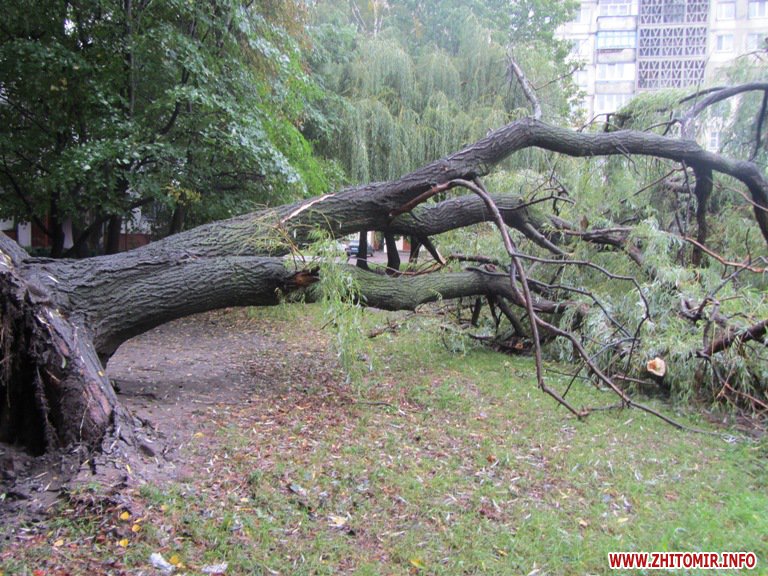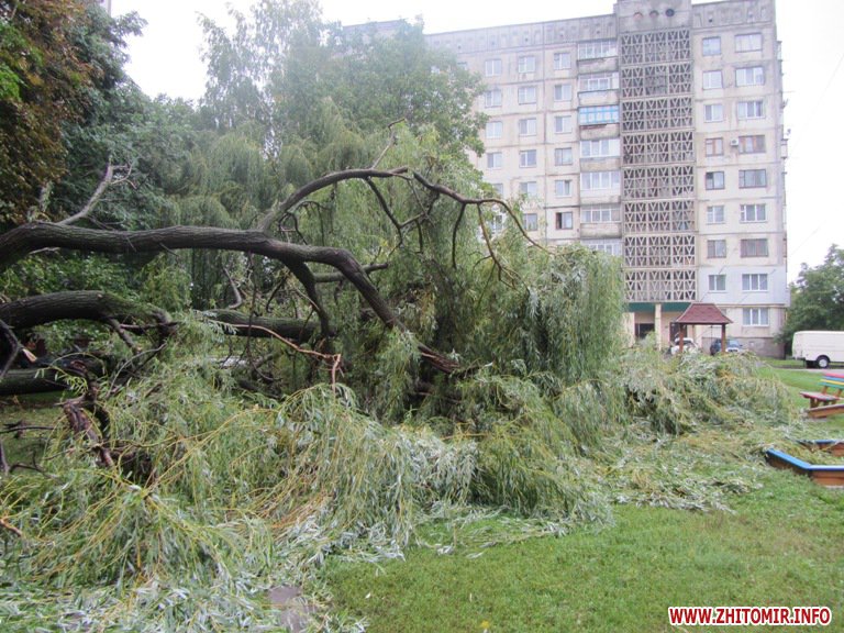 15 вересня у Житомирі в мікрорайоні Польова, навпроти ТЦ «Фуршет» у дворі будинків Вітрука,10, Шевченка, 100 та 102, протягом декількох годин упали три верби.