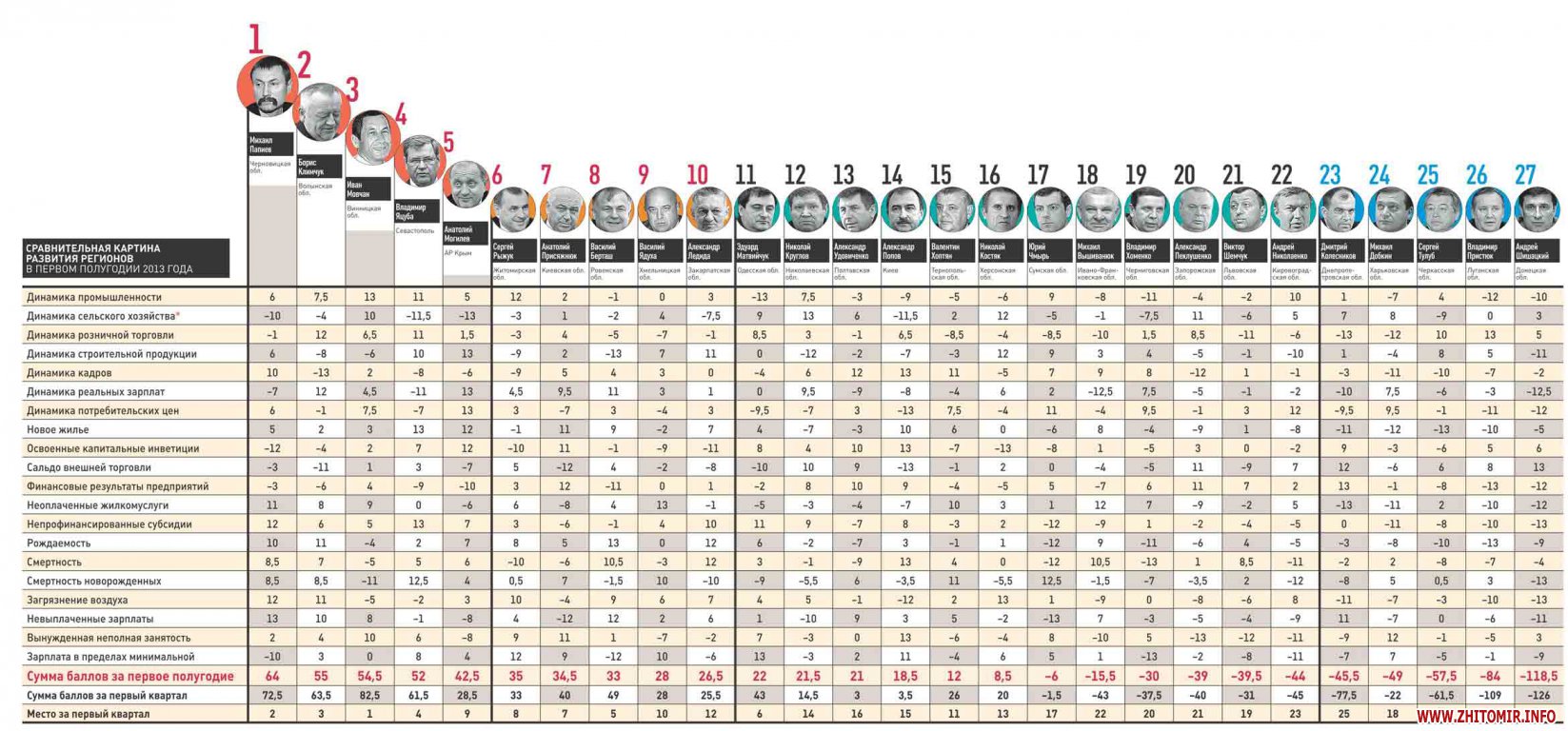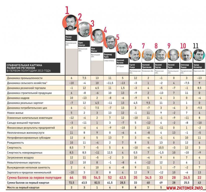 Губернатор Житомирщины Сергей Рыжук занял шестую строку в рейтинге (34,5 балла) благодаря ряду сравнительно благополучных показателей