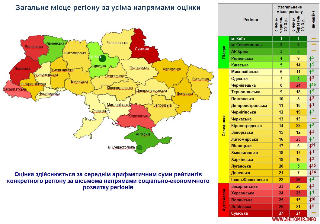 Как сообщал Житомир.info, по итогам трех месяцев 2013 года в рейтинге Кабмина Житомирская область была среди аутсайдеров.