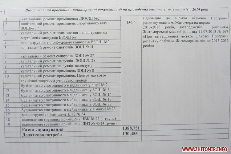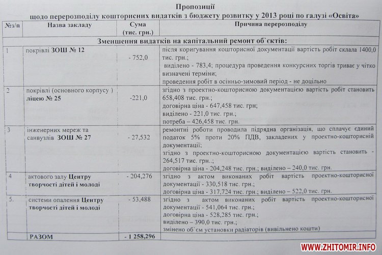 В распоряжении Житомир.info есть предложения по распределению сметных расходов из бюджета развития 2013 года по сфере «Образование».
