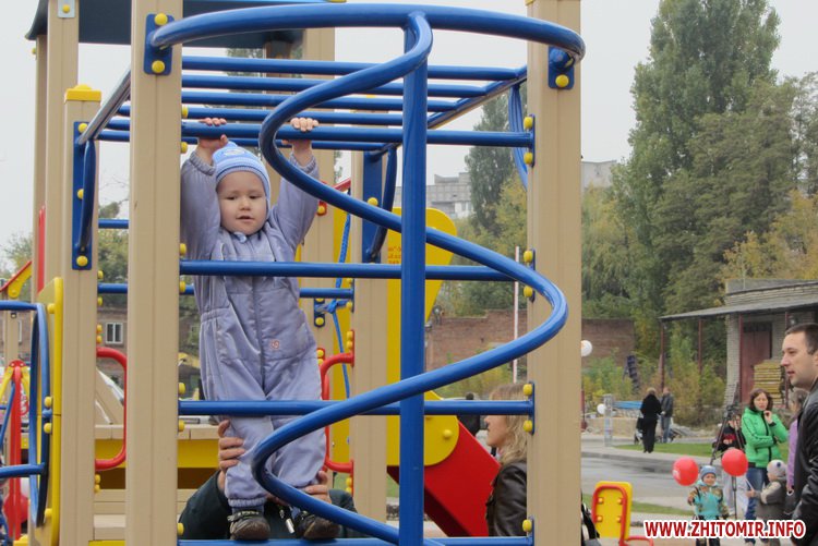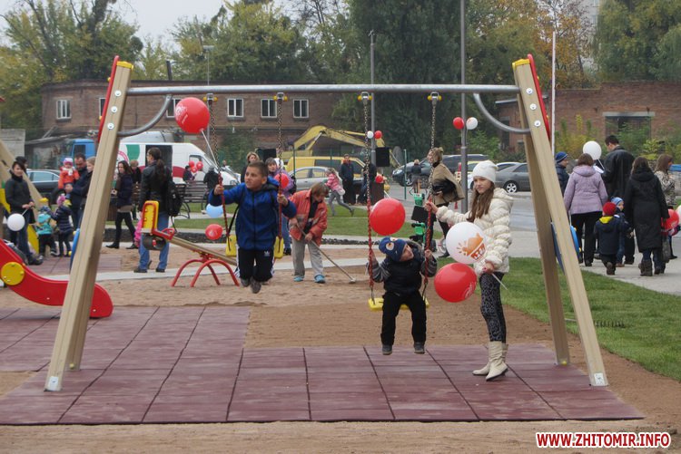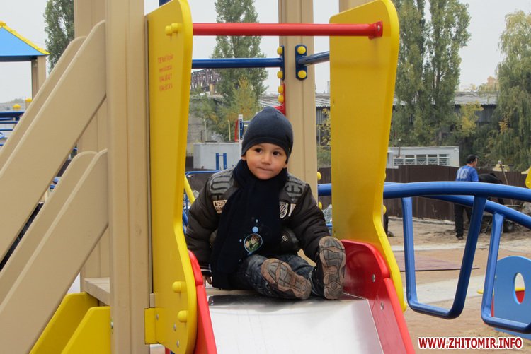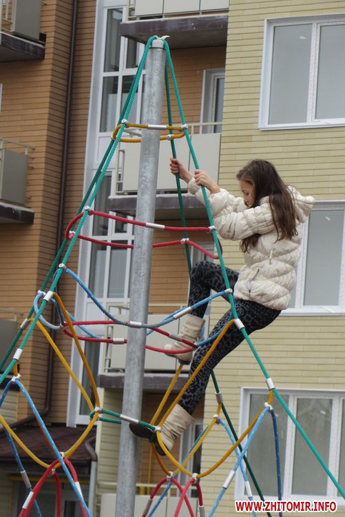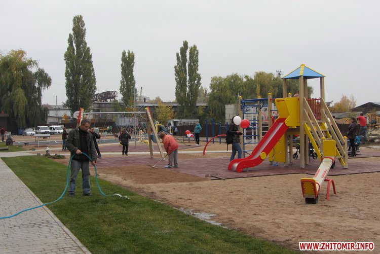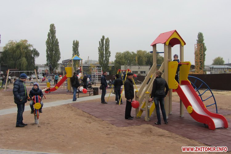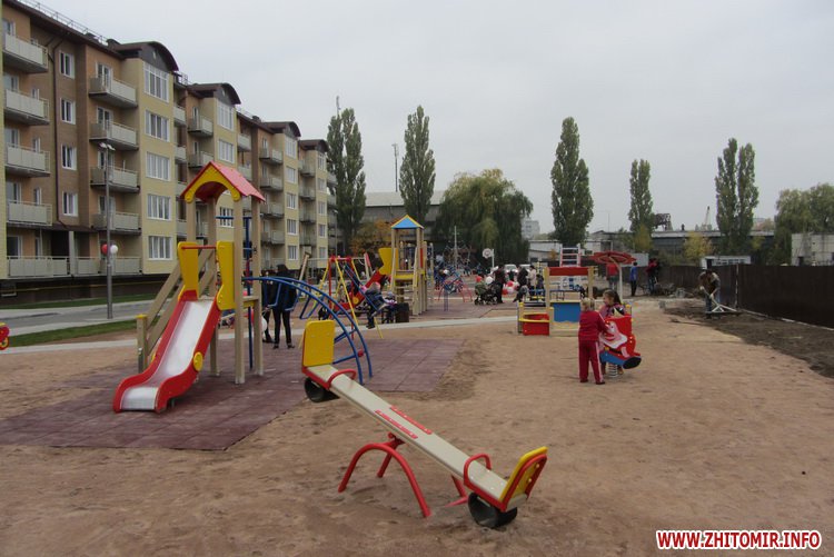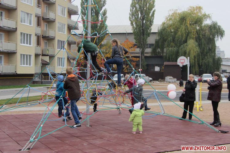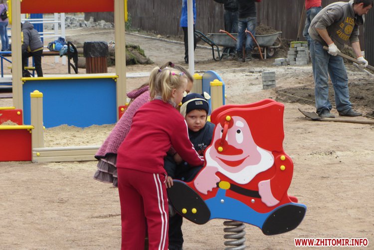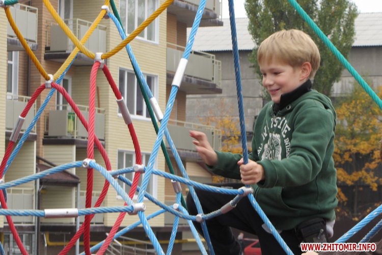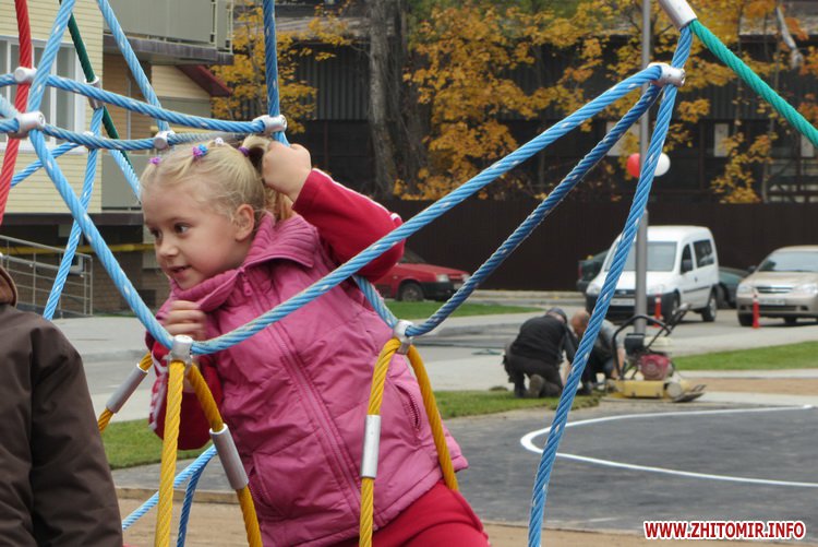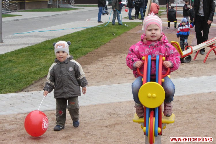 Житомирская фирма «Фаворит» во дворе построенного год назад нового 5-этажного дома по ул.Бородия установила современную детскую площадку.