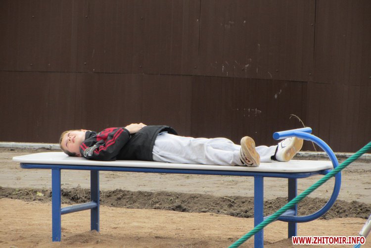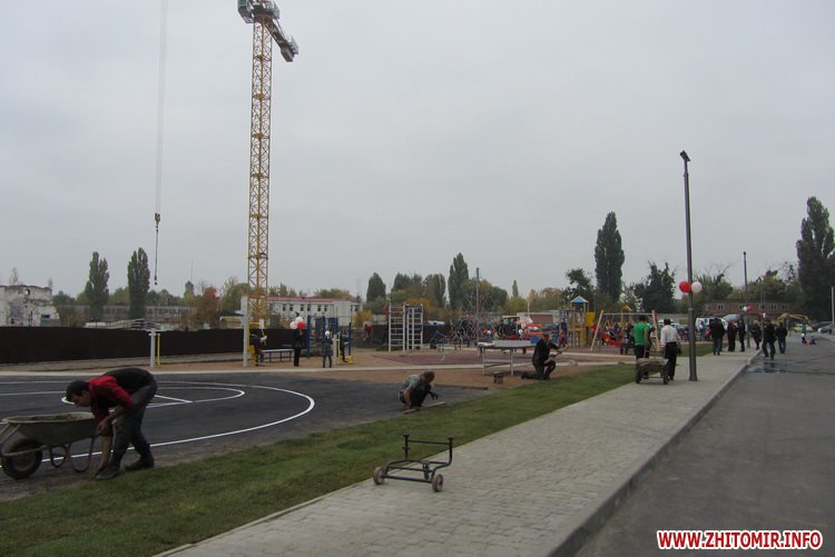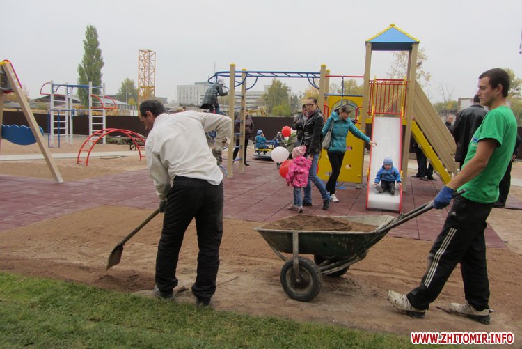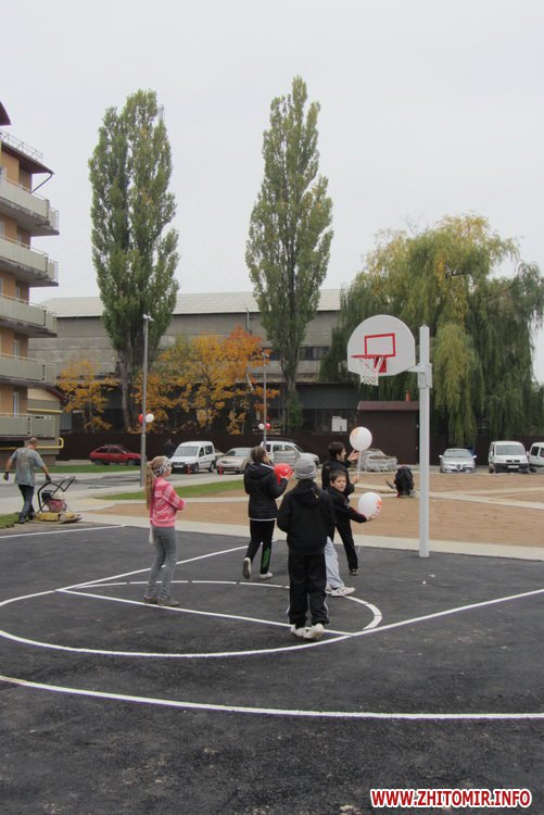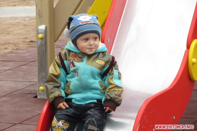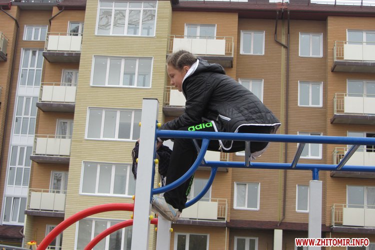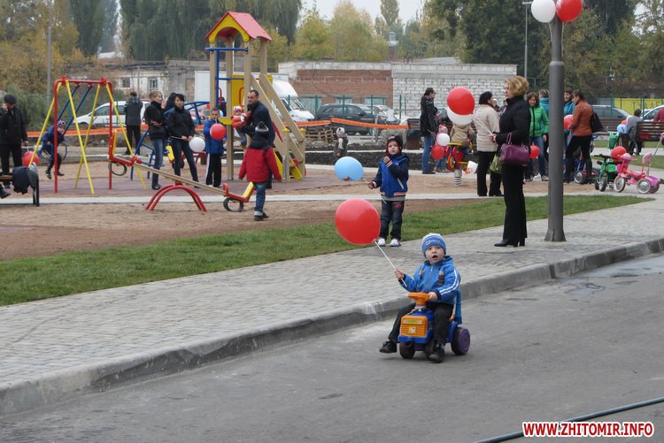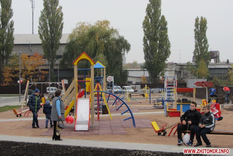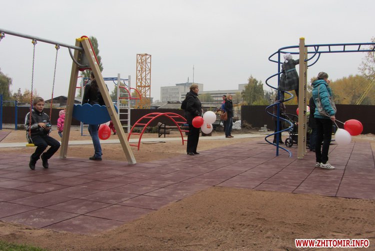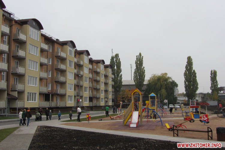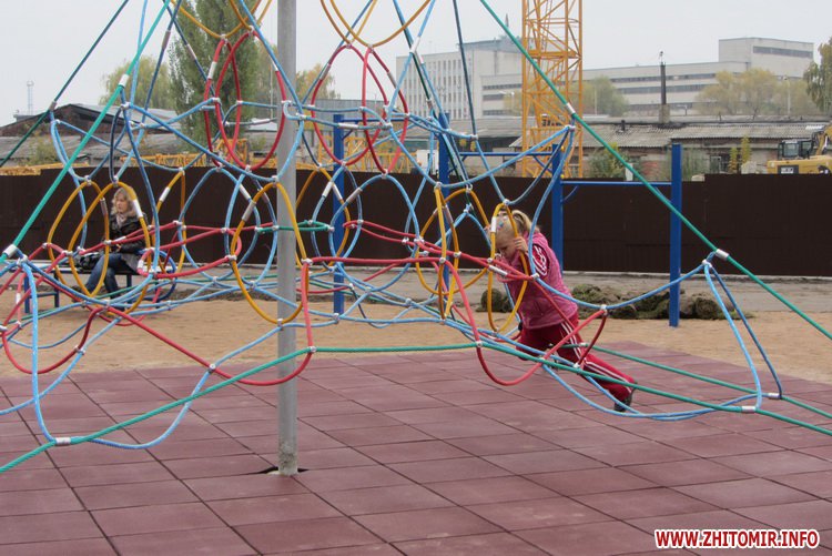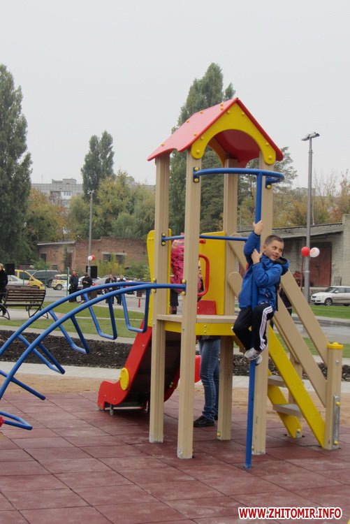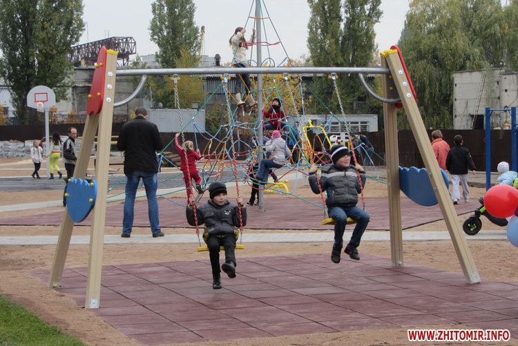 Житомирская фирма «Фаворит» во дворе построенного год назад нового 5-этажного дома по ул.Бородия установила современную детскую площадку.