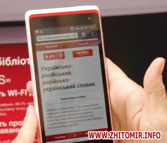 Вітрина магазину МТС на Соборному майдані перетворилася на бібліотеку. У «Мобільній бібліотеці МТС» житомиряни можуть абсолютно безкоштовно й назавжди отримати будь-яку книжку, завантаживши її у свій смартфон чи планшет через публічну мережу Wi-Fi, та спеціальні QR-коди на корінцях книг. Яку б вагу не мав паперовий еквівалент книжки – 500 грамів чи 200 кілограмів – в електронному вигляді таких книжок можна розмістити скільки завгодно у своєму смартфоні й «важитиме» ця бібліотека лише кілька кілобайт.