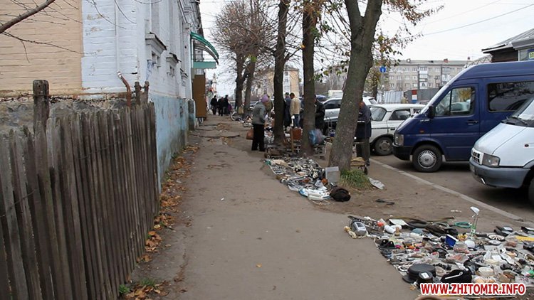 У дворі будинку на вулиці Хлібній в Житомирі кілька десятків бабусь торгували декілька років: продавали старий одяг, посуд і книжки. Але 6 листопада вранці до них прийшла міліція і заборонила стихійну торгівлю.