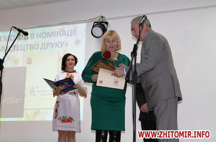 Нагороду «Мистецтво друку» розділили між собою ФОП «Кирилюк І. В.» (Інна Кирилюк, за видання «Житомирський вернісаж. Краса України. Житомирщина») та ПП «Рута» (Микола Бондар, за книгу Михайла Палюги «Избранные произведения в 2-х томах»).