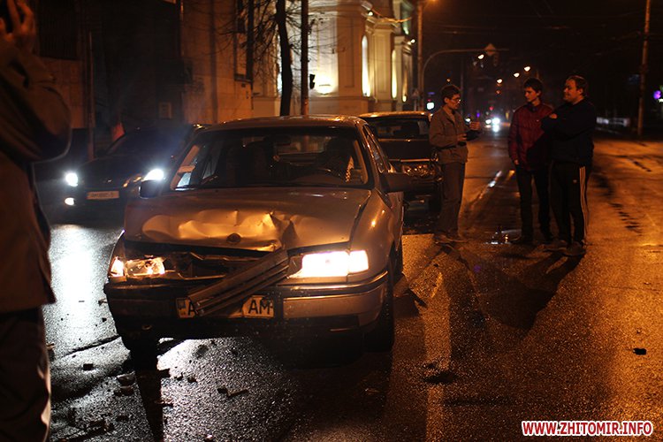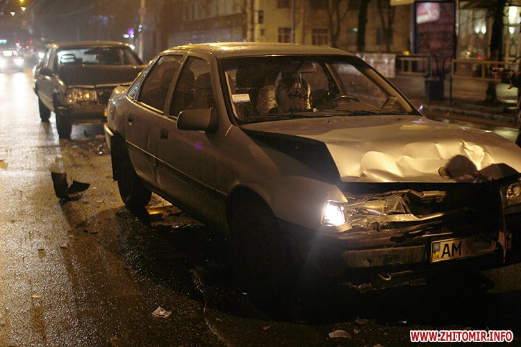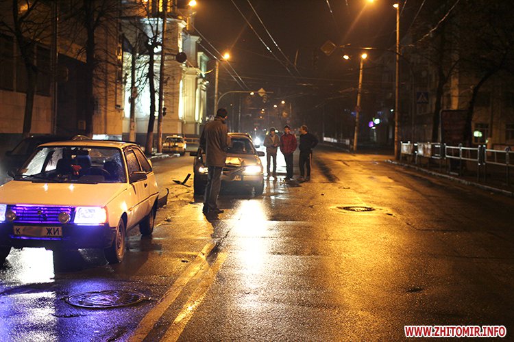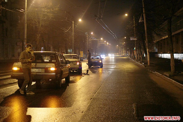 17 ноября в Житомире на улице Киевской столкнулись три автомобиля. ДТП произошло около часа ночи.