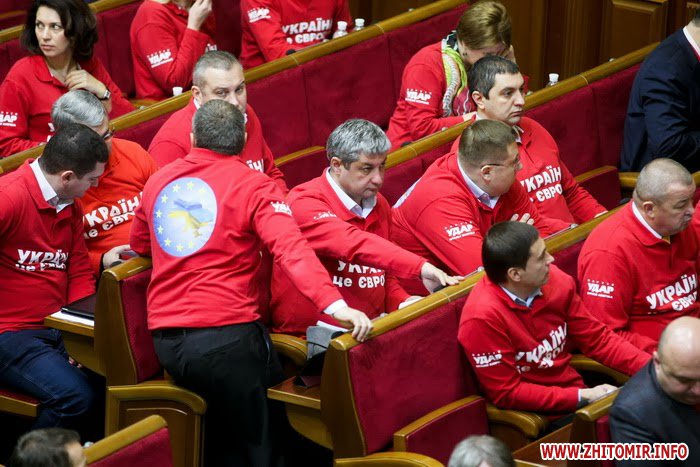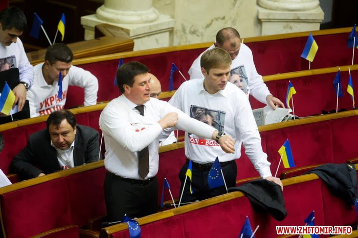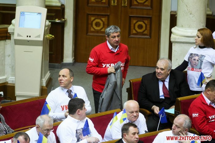 Геннадий Зубко (фракция ВО "Батькивщина") одевает оппозиционный реглан