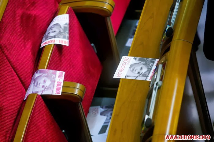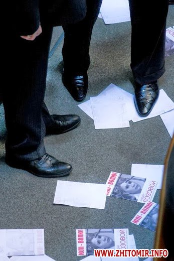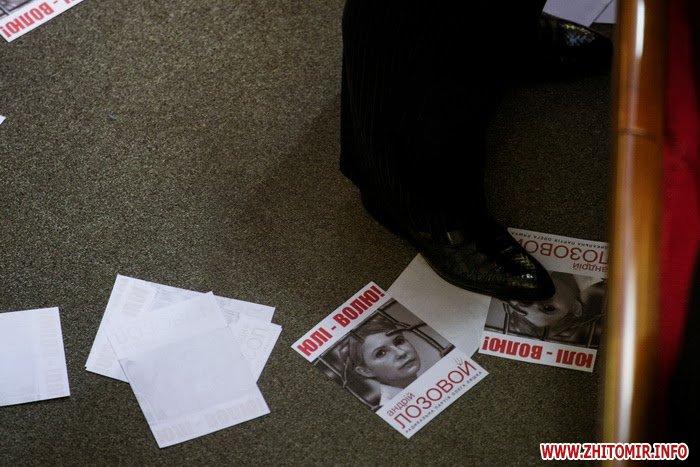 Во время выступления Анны Герман помощник нардепа Олега Ляшко Андрей Лозовой с ложи прессы бросил в зал пачку листовок "Юле- волю!"