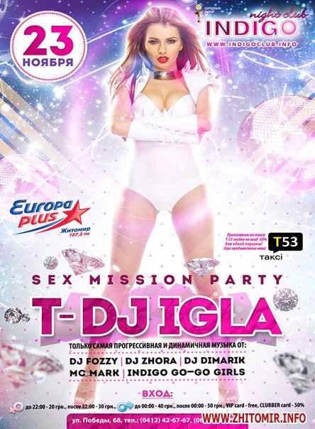 Крім того, 23 листопада у місцевому нічному клубі «Індіго» о 21.00 почнеться «sex mission party».