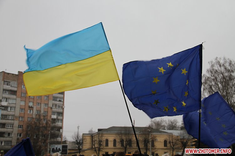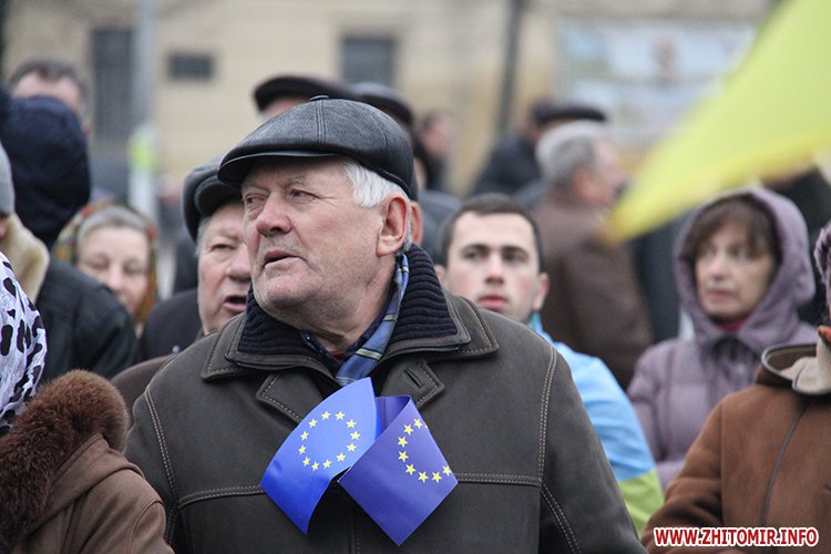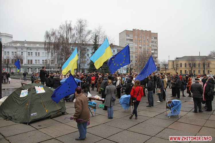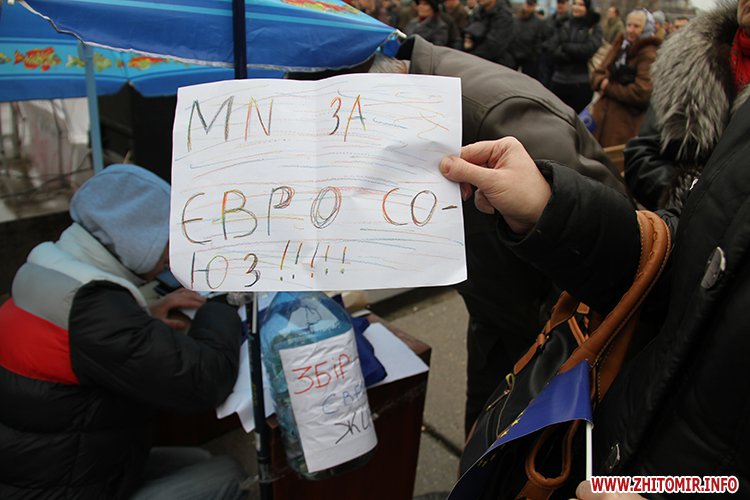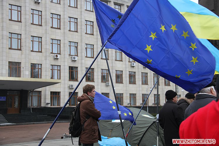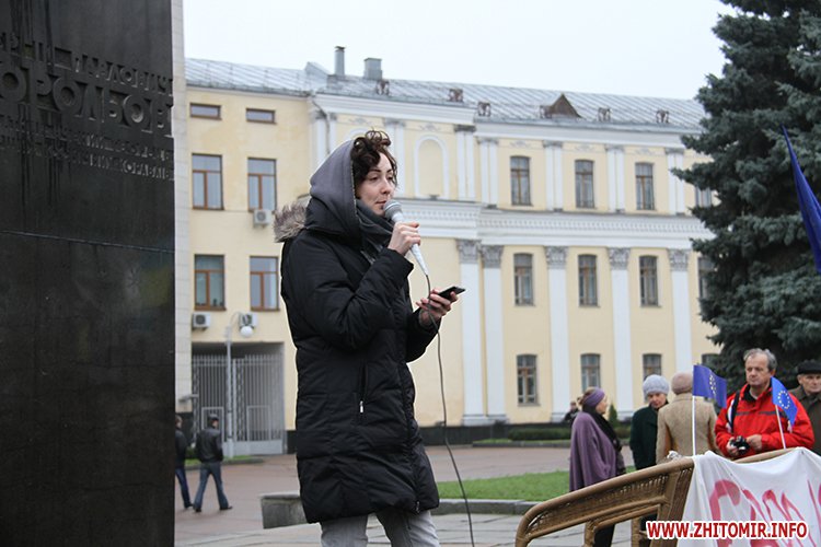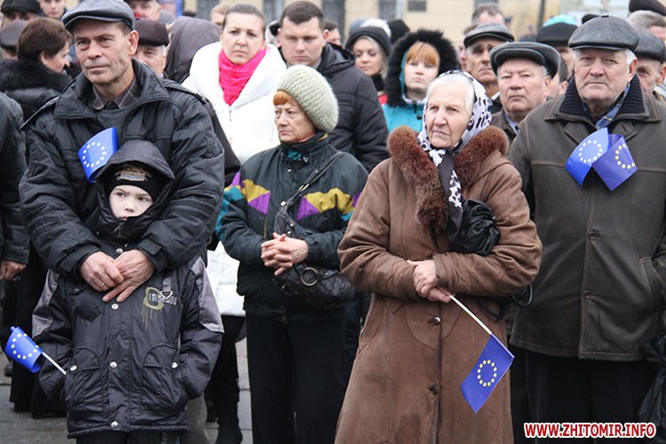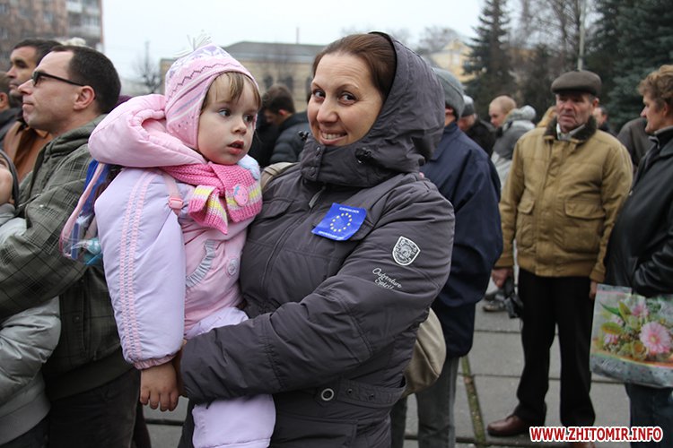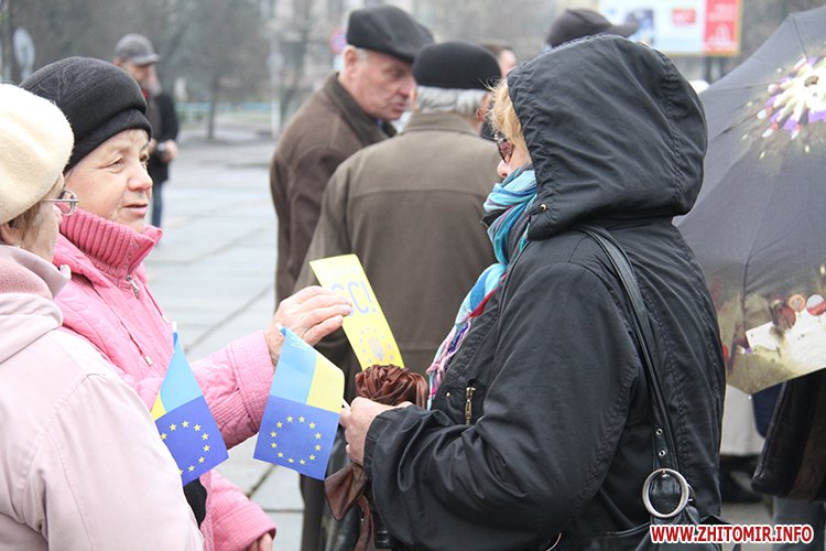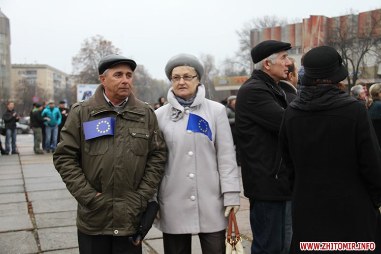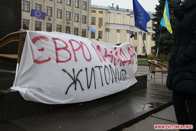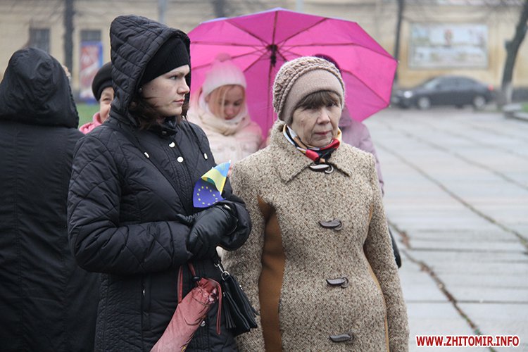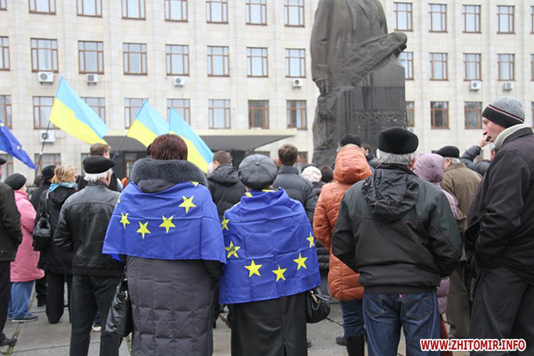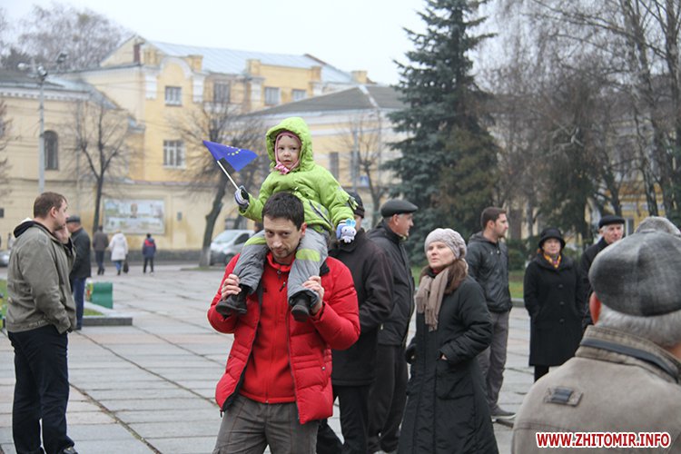 24 ноября днем на площади Королева в Житомире собрались несколько сотен человек, чтобы поддержать евроингерационный курс Украины.