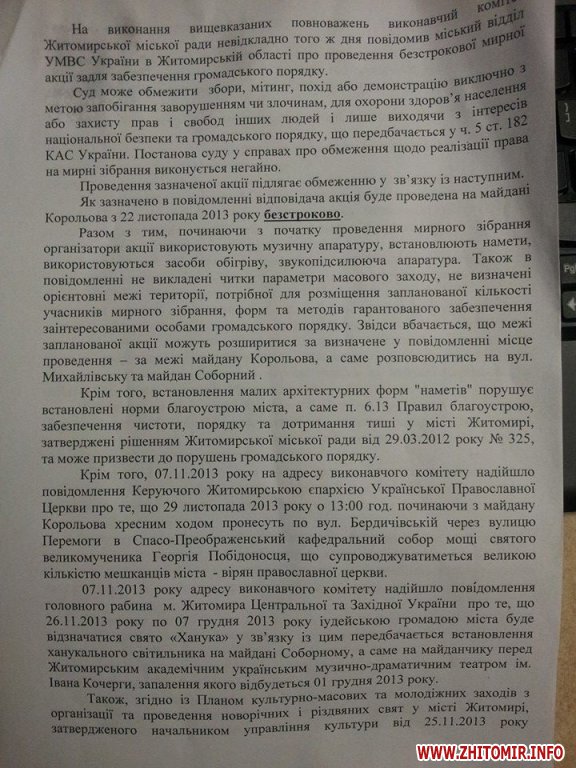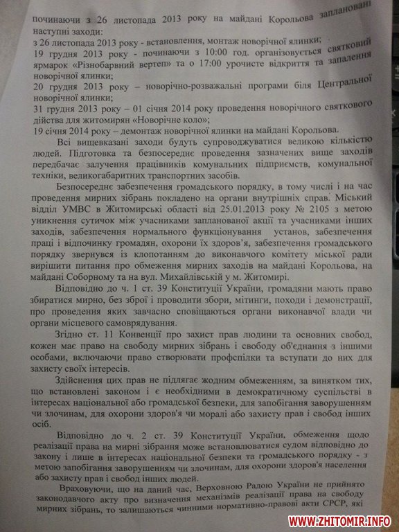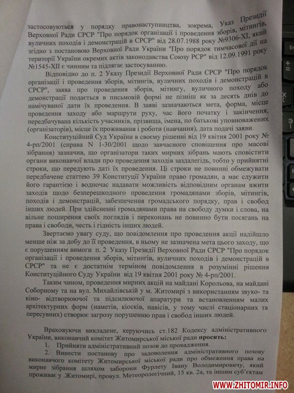 Активист подчеркнул, что в иске нет полного запрета на проведение акции, а есть запрет на установку палаток. Но люди на житомирском евромайдане находятся круглосуточно и без палаток это будет очень тяжело.