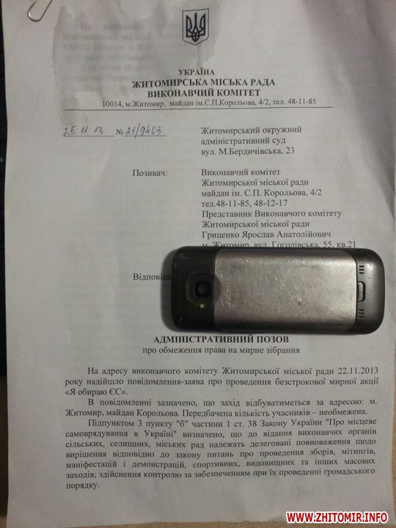 «Вчера днем мне вручили административный иск и вечером телефонограммой секретарь судьи сообщил, что сегодня, 26 ноября, в 15.00 в зале №3 окружного административного суда состоится рассмотрение иска горсовета», - рассказал Иван Фурлет, который подавал сообщение о проведении бессрочной акции на площади Королева.