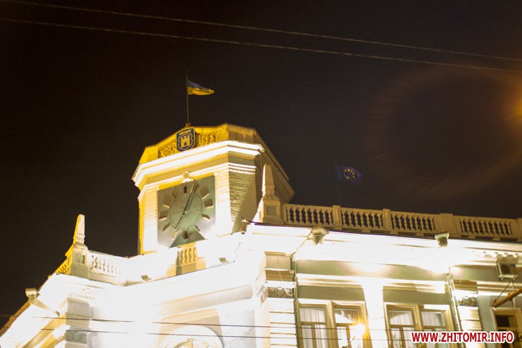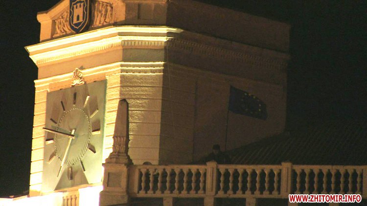 Втім, не чекаючи рішення місцевих рад, хтось із активістів встановив прапор Євросоюзу на даху мерії Житомира.