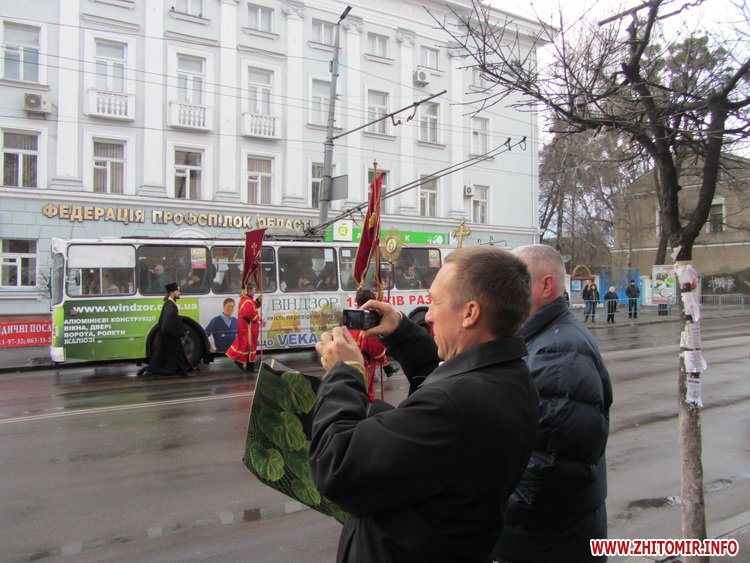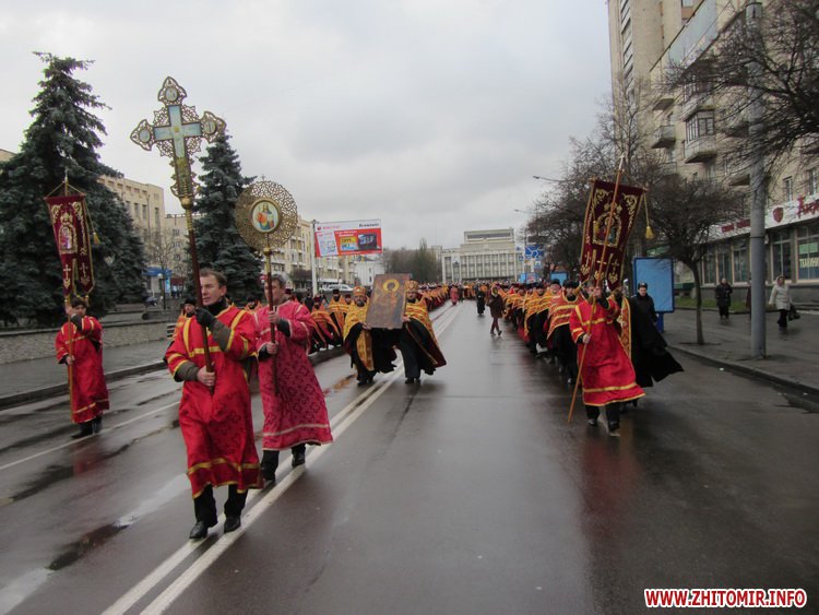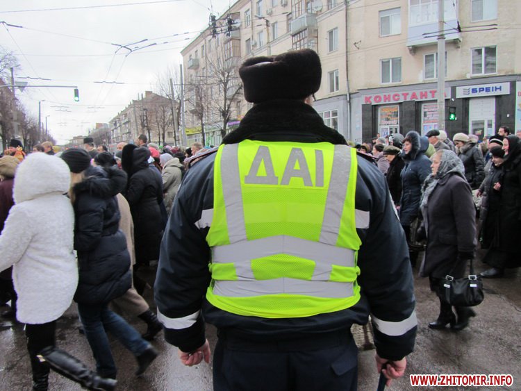 У зв’язку з урочистою ходою містом на окремих ділянках вулиць Великій Бердичівській, Перемоги та площі Соборній тимчасово був обмежений рух транспорту. На дорозі працювали регулювальники.