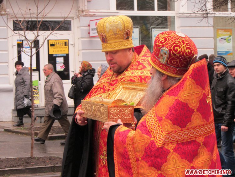 Аби зустріти святиню, православне духовенство та близько двох сотень віруючих зібралися на площі Корольова. Звідти о 13.00 люди хресною ходою вирушили до Спасо-Преображенського кафедрального собору, де відбулось святкове богослужіння.