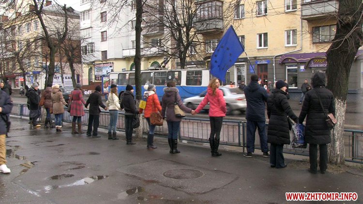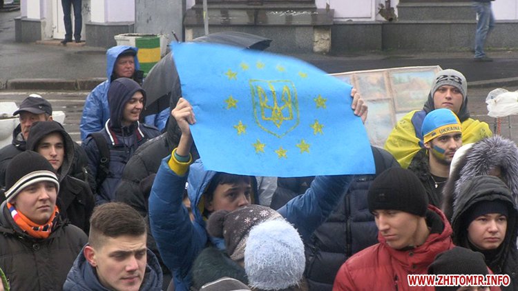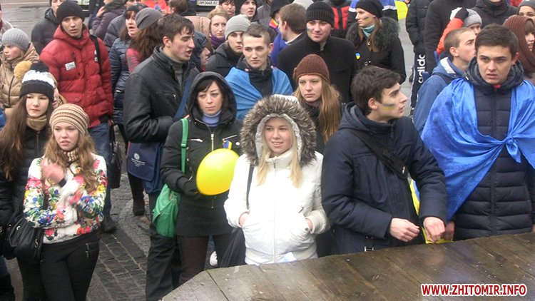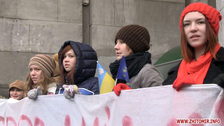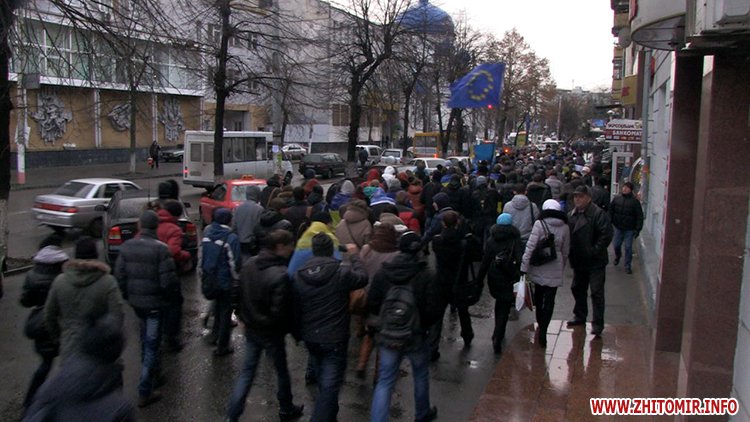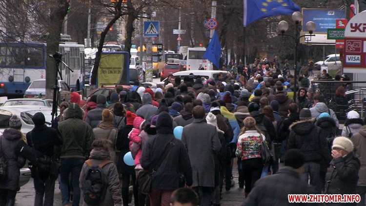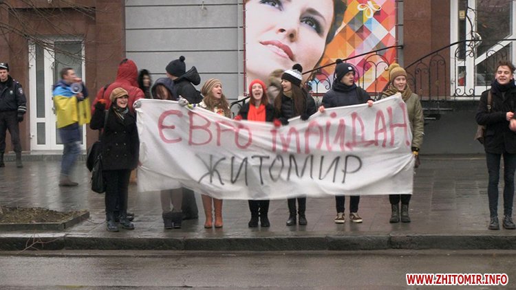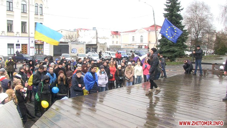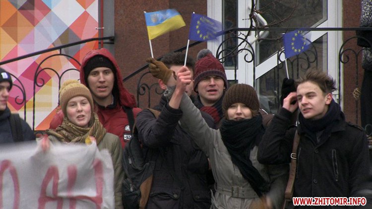 Незважаючи на те, що Президент України не підписав Угоду про асоціацію з ЄС, молодь вірить, що Україна таки приєднається до Європи. Студенти викрикували гасла «Житомир – це Європа», «Молодь Житомира за євроінтеграцію» та закликали перехожих долучитися до Євромайдану у Києві.