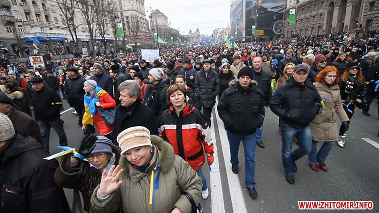 По некоторым подсчетам, в этот день в центре столицы было около миллиона человек. Люди приехали выразить свое несогласие с действиями власти, которая провалила подписание соглашения об ассоциации с Евросоюзом, и возмущение безжалостным разгоном мирной акции в ночь на 30 ноября.