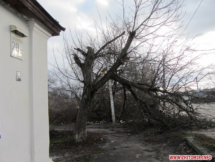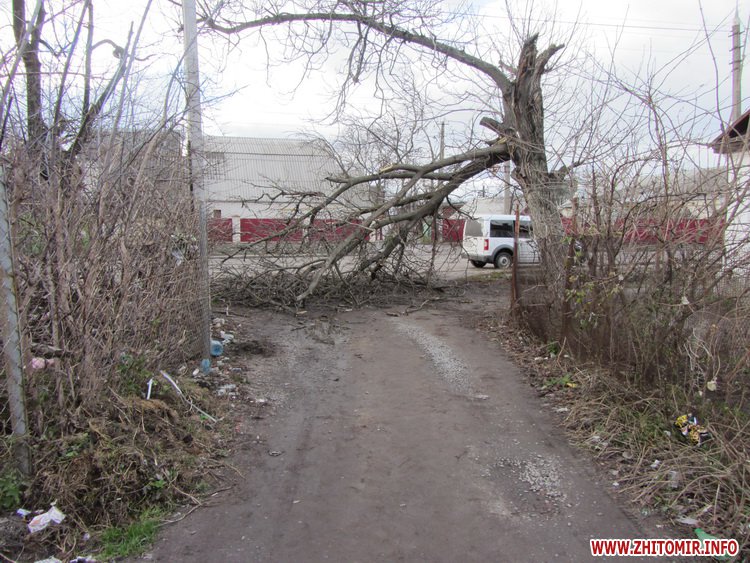 В Житомире, возле трамвайной остановки в районе перекрестка улиц Восточная-Шевченко, из-за сильного ветра упало дерево.