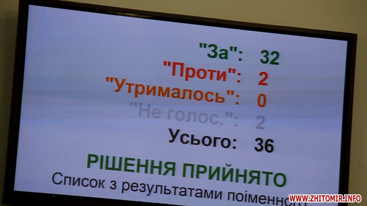 Під час таємного голосування рішення не приймають, бо не вистачає голосів, коли голосують поіменно – 32 депутати «за», і виконком розпускають. Вже втретє з тих пір, як Володимир Дебой став мером Житомира.