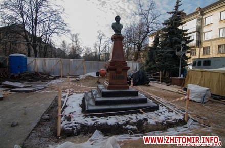 Как сообщал Житомир.info, в середине ноября на Старом бульваре появился забор вокруг памятника Пушкину. Начальник управления капитального строительства горсовета Аллы Корж говорила, что планируют за месяц вместо асфальта положить гранитную брусчатку и заменить гранитные плиты у подножия памятника.