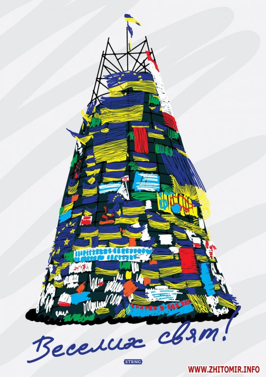 Житомирський дизайнер Ілля Стронговський зобразив київську йолку на новорічній листівці і за лічені години вона здобула шалену популярність.