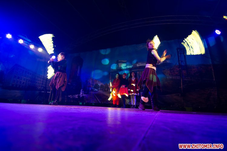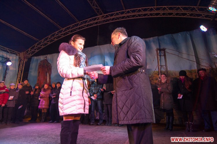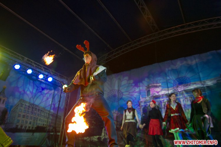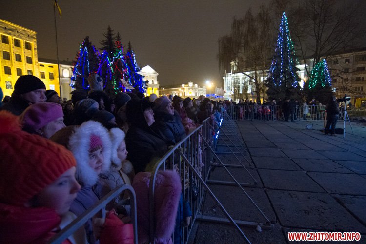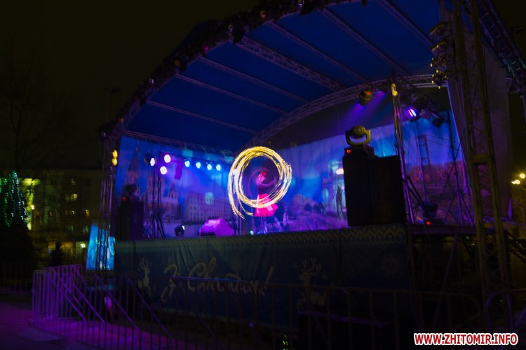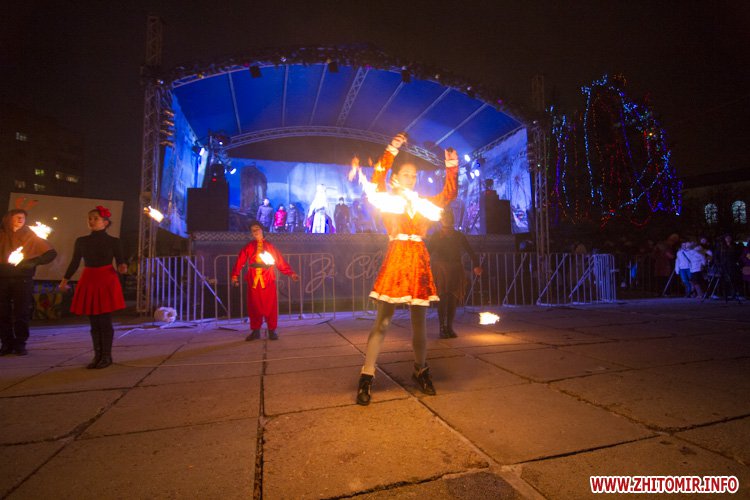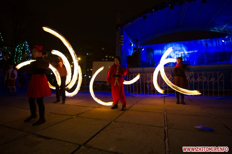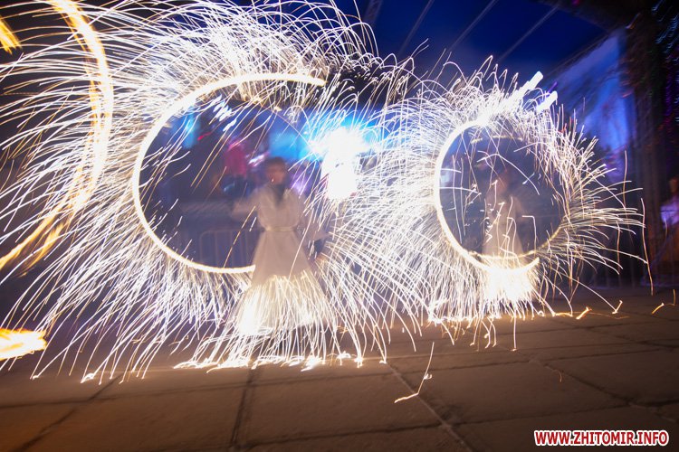 После окончания официального поздравления и праздничного фейерверка, житомиряне, которых не испугал мороз на улице, начали водить вокруг зажженной новогодней елки хороводы.