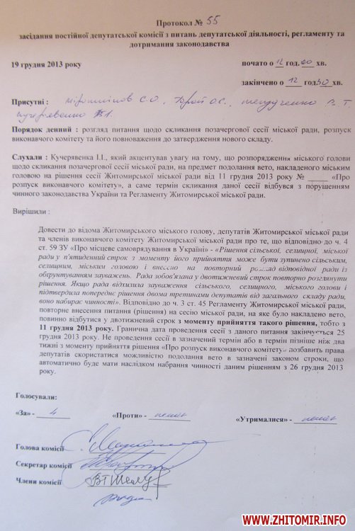 Регламентна комісія Житомирської міської ради вбачає порушення закону про місцеве самоврядування в рішенні мера про скликання сесії.