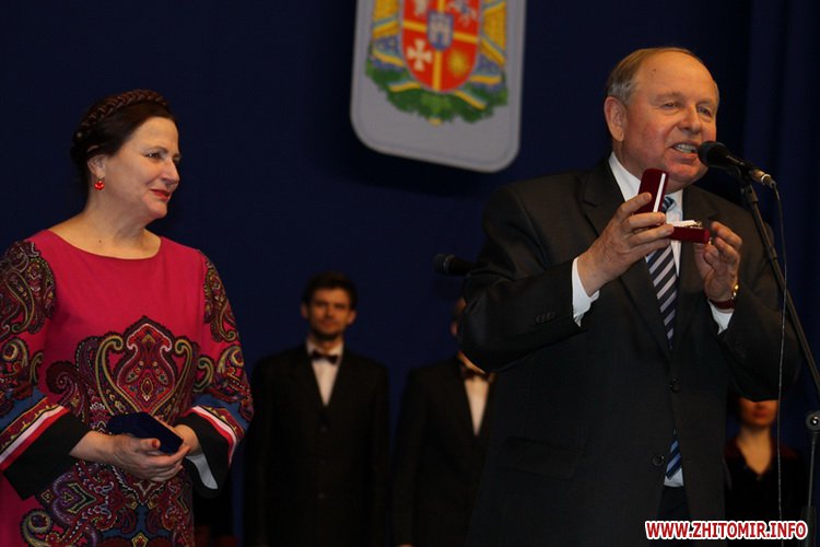 Почесний нагрудний знак відомій особистості, а також іменний годинник та квіти вручив голова Житомирської обласної ради Йосип Запаловський після благодійного концерту духовної музики, який відбувся 9 січня у концертній залі Житомирської обласної телерадіокомпанії.