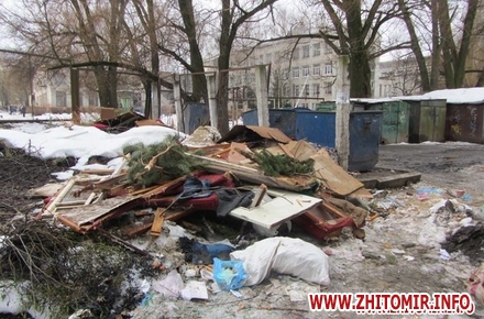 По информации городской власти, сейчас в Житомире 16 стихийных свалок мусора: ул. Маршала Рыбалко; ул.Баранова,51; ул. 1 Мая, 101; ул.Труда, 3; перекресток Космонавтов-Селецкая; ул.Свободы, 36; ул.Большая Бердичевская, 125 и 122-а; перекресток Винницкая-Кривой брод; переулок Шоссейный, 8; переулок Трояновский, 11; Набережна под скалами, 14; ул.Маликова, 13; ул.Фруктовая, 23; переулок 3-й Селецкий, 19; ул.Радоновая.