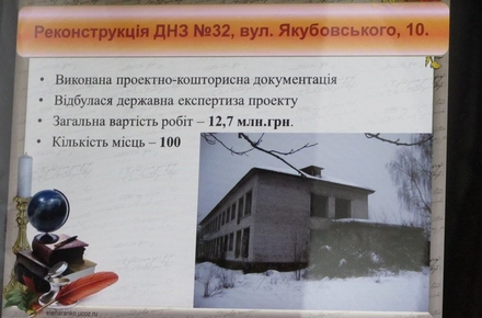 Напомним, в августе 2013 года на заседании коллегии Житомирской облгосадминистрации Владимир Дебой попросил включить этот детсад в программу регионального развития на 2014 год. Тогда мэр Житомира рассказал, что уже готова проектно-сметная документация, согласно которой общая стоимость реконструкции помещения детсада составляет 12 млн. 700 тыс. грн.