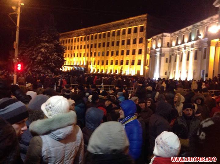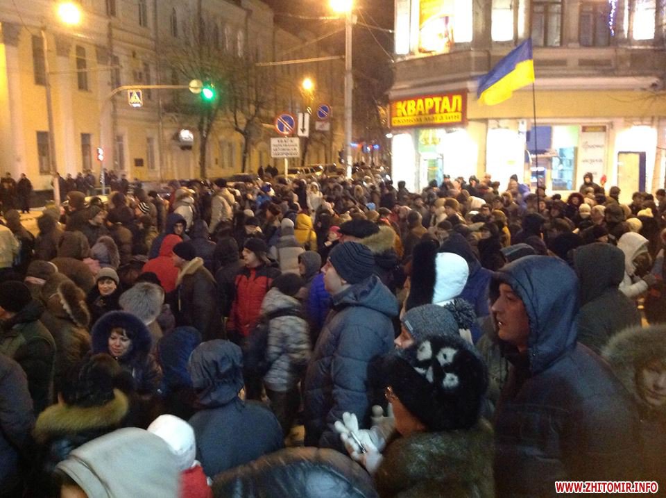 Около 19.30 людей на площади было уже около трех тысяч, они были настроены решительно и требовали отправить мэра Житомира Владимира Дебоя и губернатора Сергей Рыжука в отставку. Местные депутаты пытались убедить людей не предпринимать радикальных действий, но митингующие заблокировали движение на ул.Большая Бердичевская, которая находится между зданием облгосадминистрации и мэрии: группы людей непрерывно ходят по пешеходному переходу.