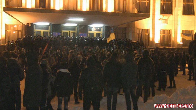 Как сообщал Житомир.info, 23 января около 500 человек пикетировали сессию Житомирского облсовета и пытались штурмовать здание облгосадминистрации. Вечером более 2 тысяч человек пришли на акцию и требовали от мэра и губернатора перейти на сторону народа или освободить админздания.